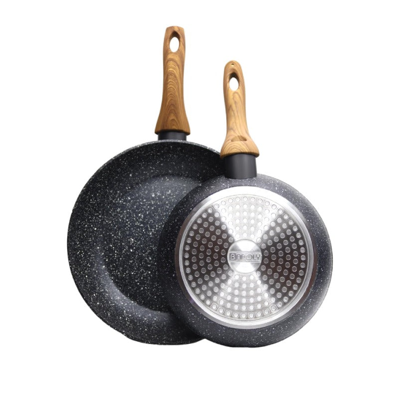 اطبخ ونظف بسهولة مع مجموعة مقلاة الجرانيت المكونة من 3 قطع. تجعل الطلاء غير اللاصق المتين الطهي سهلاً، بينما يضيف تصميم الجرانيت لمسة من الأناقة لمطبخك. مع وجود 3 أحجام متضمنة، يمكنك بسهولة تحضير الوجبات لأي مناسبة.