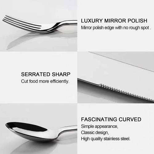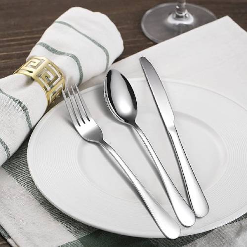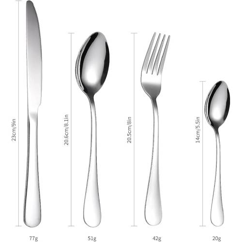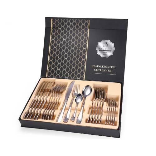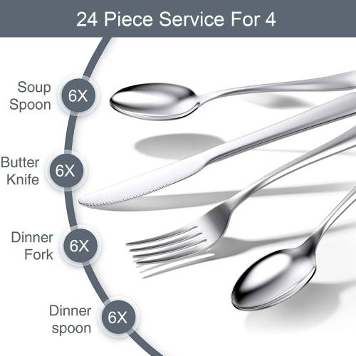 مصنوعة من الفولاذ المقاوم للصدأ عالي الجودة، مجموعة أدوات المائدة هذه تحتوي على 24 قطعة لجميع احتياجات تناول الطعام الخاصة بك. استمتع بالمتانة والأناقة مع كل استخدام. ارفع مستوى تجربة تناول الطعام الخاصة بك مع هذه المجموعة التي يجب اقتناؤها.