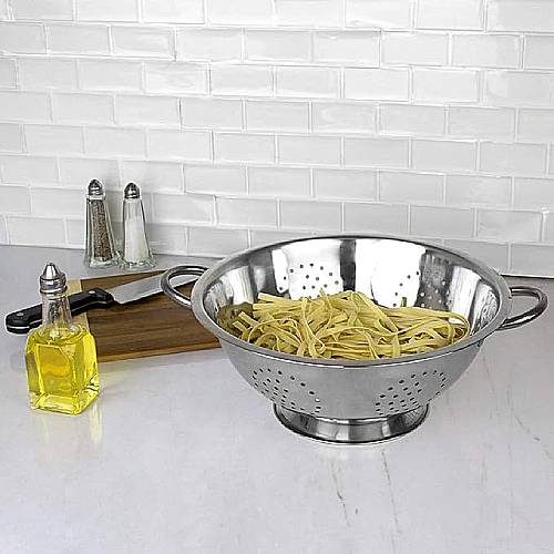 هذا المصفاة الفولاذية مع مقبض مثالية لتصفية السوائل والفواكه والخضروات. يضمن مادتها الفولاذية منتجًا طويل الأمد ودائمًا، ويسمح المقبض بالتعامل الآمن والسهل. أنجز مهام التصفية الخاصة بك بسهولة!