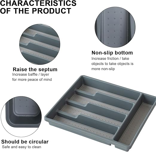 نظم درج أدوات المائدة الخاص بك بسرعة وسهولة مع منظم درج أدوات المائدة لدينا. مع بطانة غير قابلة للانزلاق مدمجة، ستبقى عناصرك آمنة لسهولة الوصول.