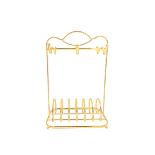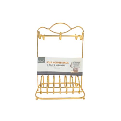 This cup holder is designed to provide convenient storage in the kitchen. It is crafted with sturdy metal that can withstand the weight of heavy items and provides reliable support. The cup holder's slim design takes up minimal counter space, making it a great addition to any kitchen.