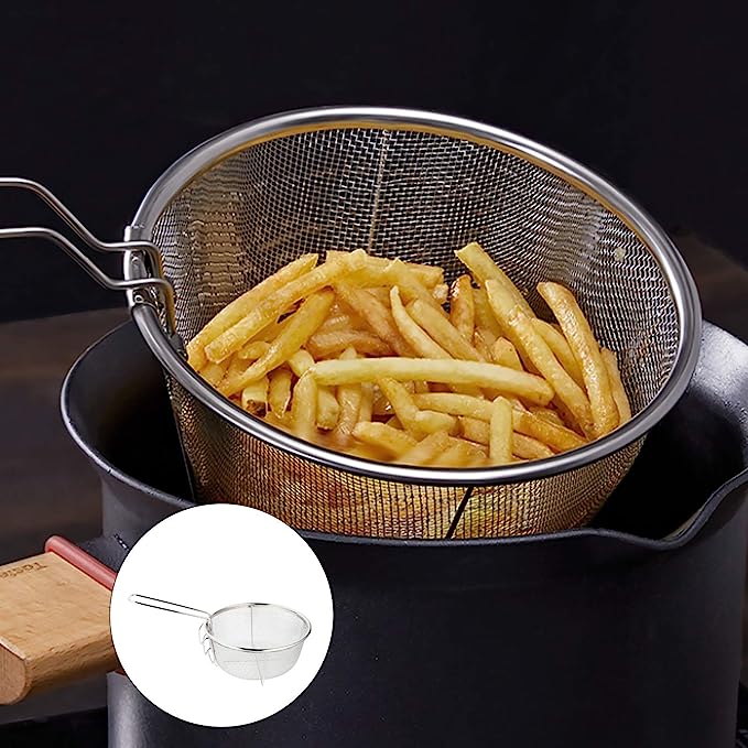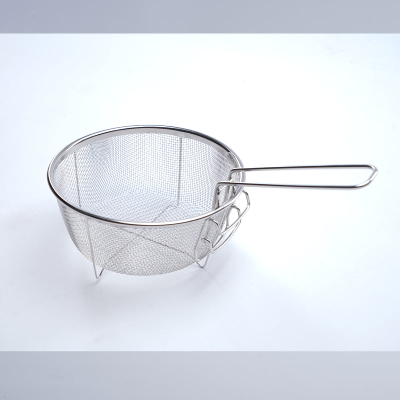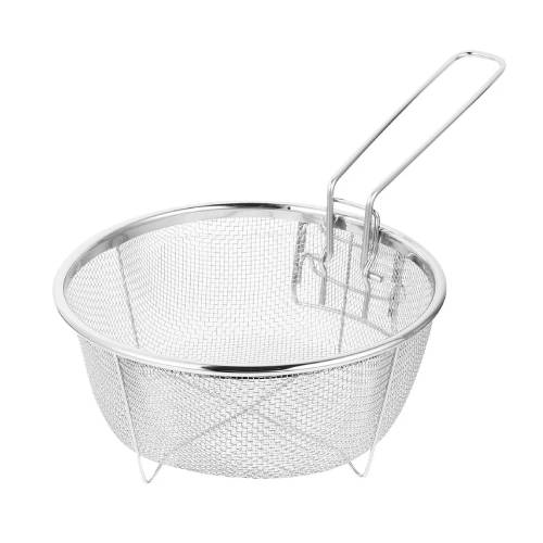 This heavy-duty round fry basket is perfect for a busy kitchen. The basket is made of stainless steel and has a rugged handle for a secure grip. With its tapered design, this fry basket allows for even heat distribution and maximum crispiness. Fry your food to perfection every time.